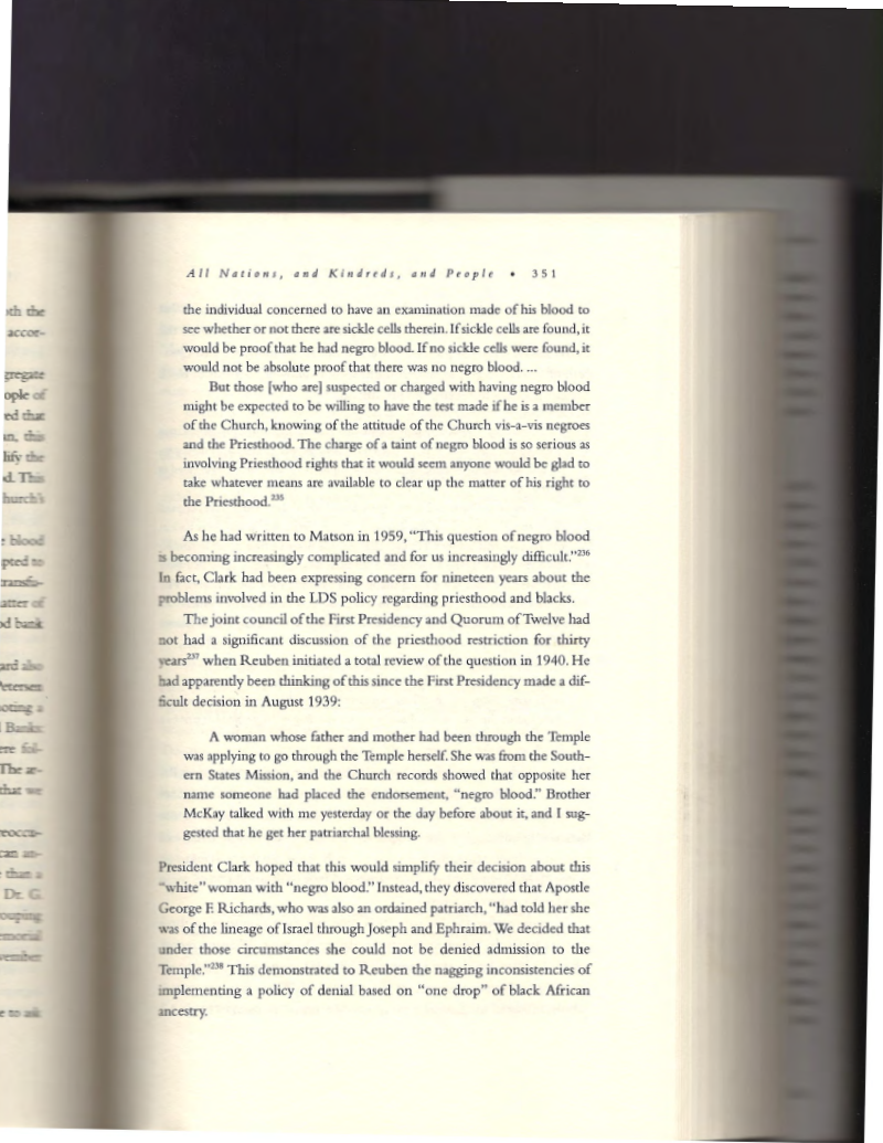 J. Reuben Clark expresses the difficulty of resolving the question of "negro blood."