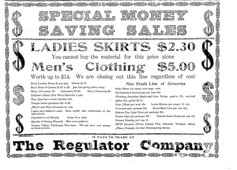 "Special Money Saving Sales," Richfield Reaper, November 12, 1908