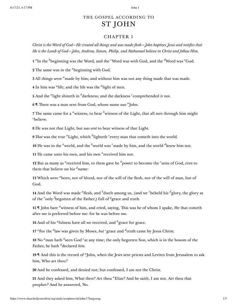 John 1:23, New Testament, The Church of Jesus Christ of Latter Day Saints, accessed August 17, 2023