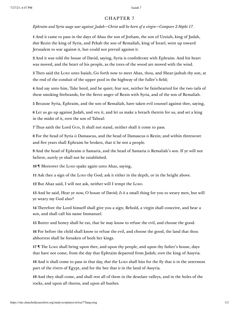 Isaiah 7:3, Old Testament, The Church of Jesus Christ of Latter Day Saints, accessed August 17, 2023