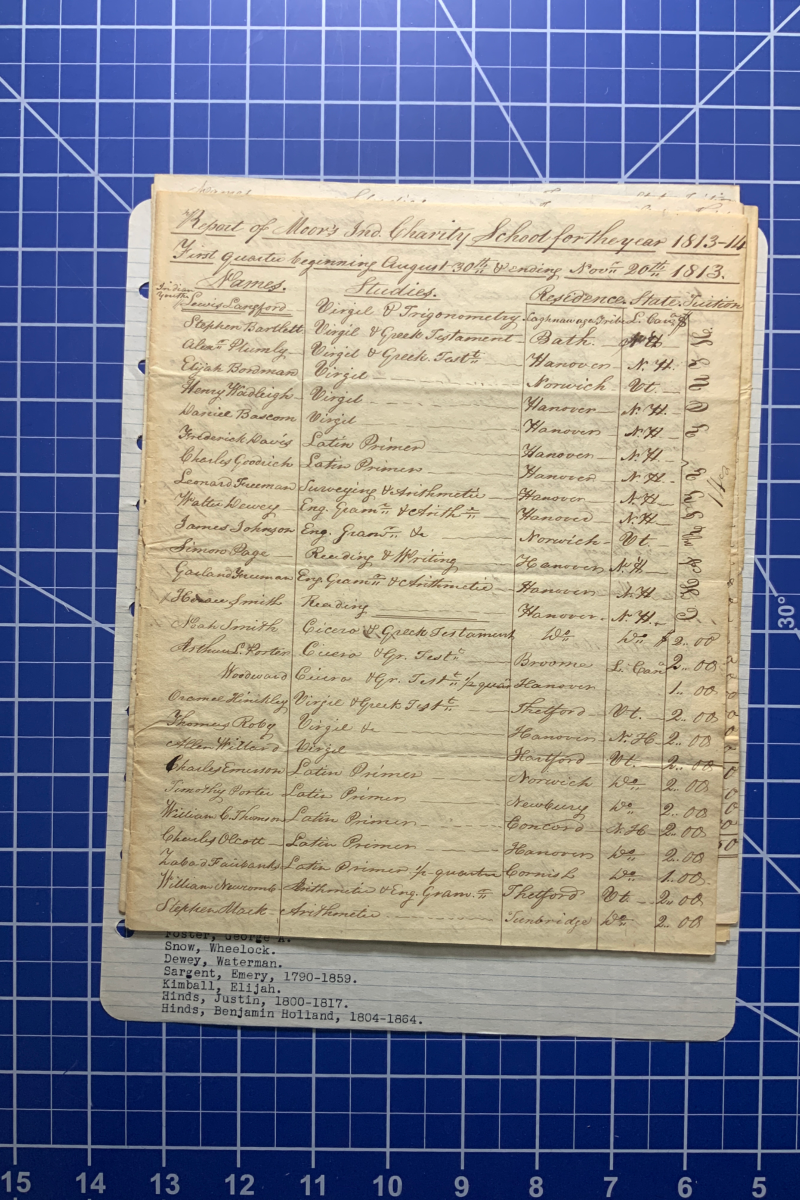 [Joseph Perry's record of students at Moor's Indian Charity School for the year of 1814 - 1814. Hyrum Smith does not appear on these records.]