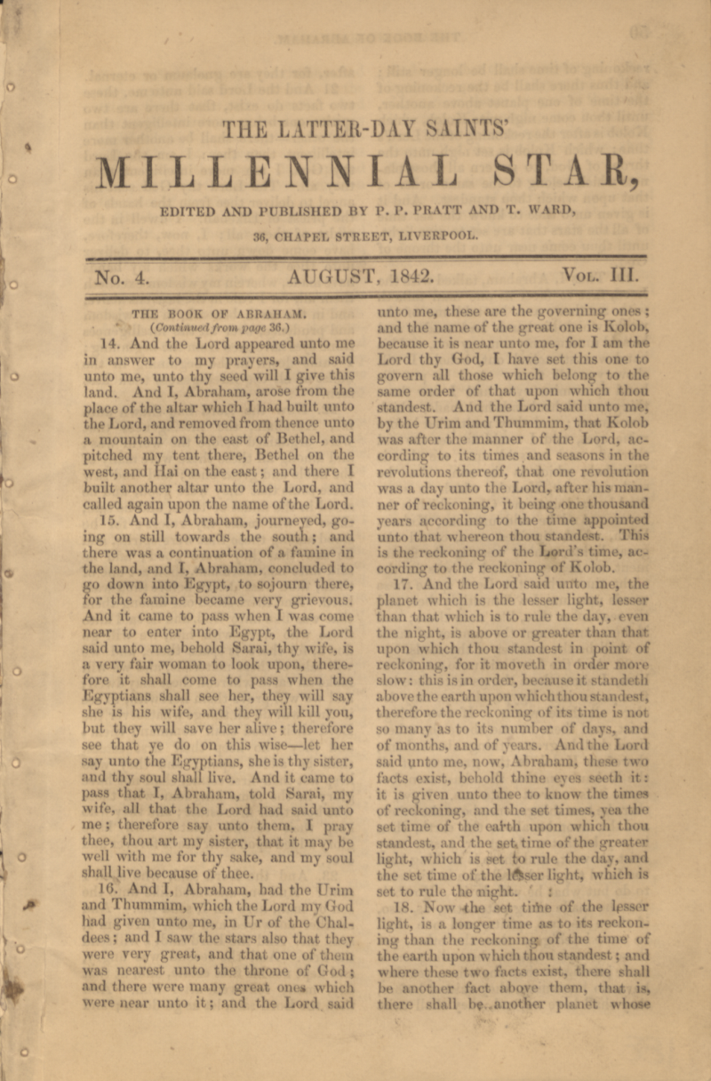 "The Book of Abraham," The Latter-day Saints' Millennial Star 3, no. 4 (August 1842): 49–53